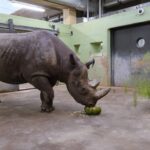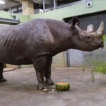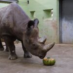 Pühapäeval saab 22-aastaseks meie teravmokk-ninasarvik Binti. Sünnipäeva eel pakuti talle kõrvitsakausis pehmele seemnetega kõrvitsasisule lisaks keedetud riisi, hakitud murulauku ja õunatükke, peal kaunistuseks salatileheke. Ka suur punt asparaagust läks mõnusa krõmpsutamise saatel kahesarvelise hiiglase kõhtu.