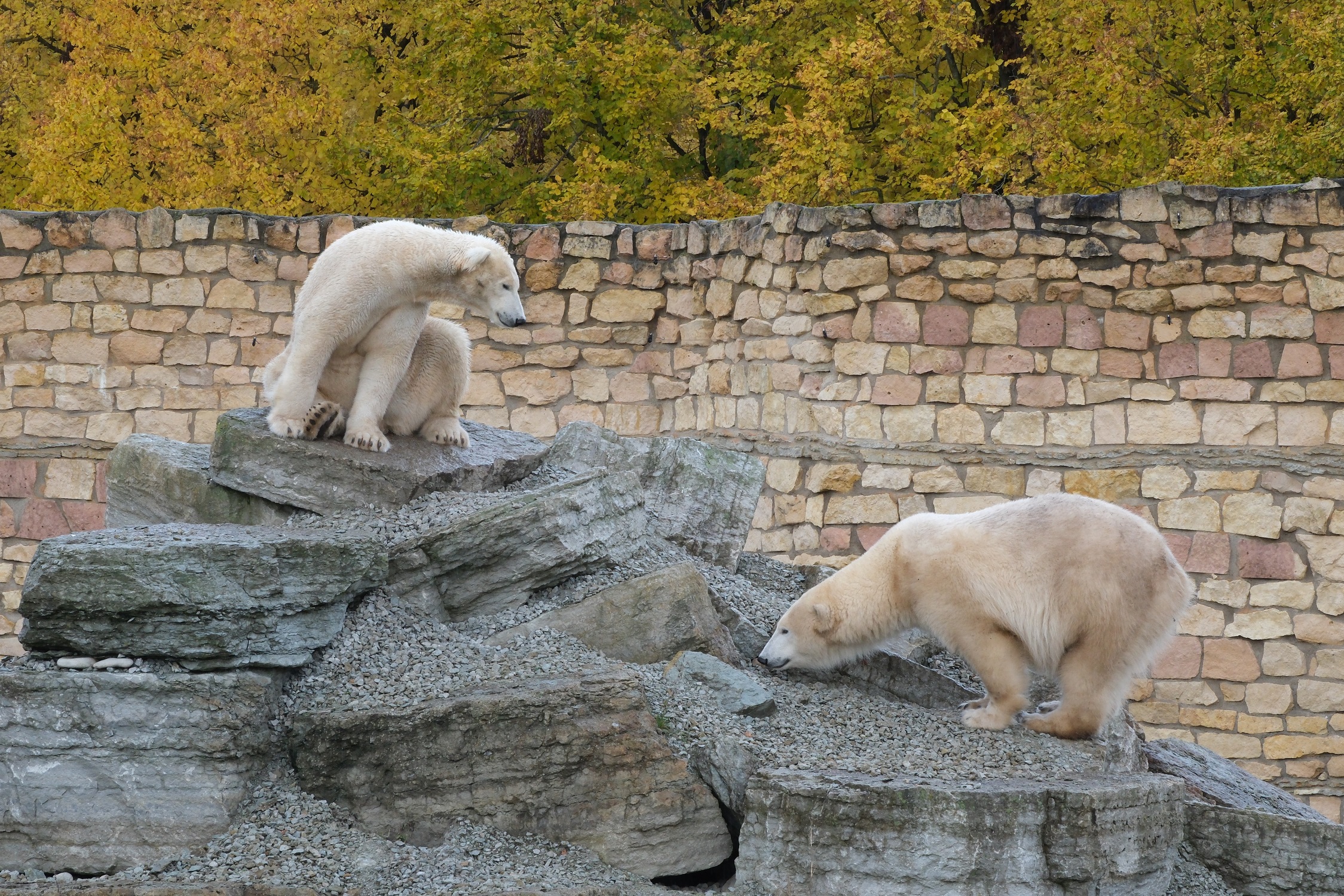 Noored jääkarud Kaja ja Skadi turnivad hoolega suurtest paekivilahmakatest hunniku otsas, nuhutavad kividevahelisi pragusid ning jagelevad omavahel sõbralikult. Inuk ja Imaq aga patseerivad aedikus ning hoiavad ümbrusel tähelepanelikult silma peal. Kõik jääkarud on end talveks mõnusalt ümaraks söönud.