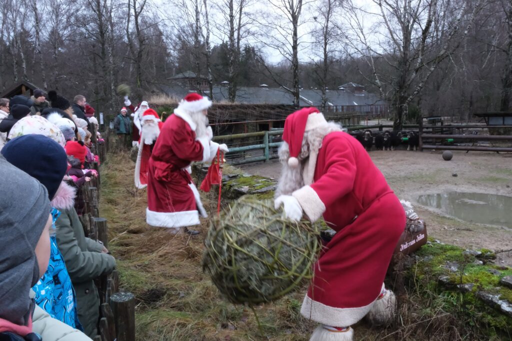 Jõuluvanade külaskäik lõppeb jälle lääneväravas ning tagasiteel minnakse veel teistelegi loomadele kingitusi viima.