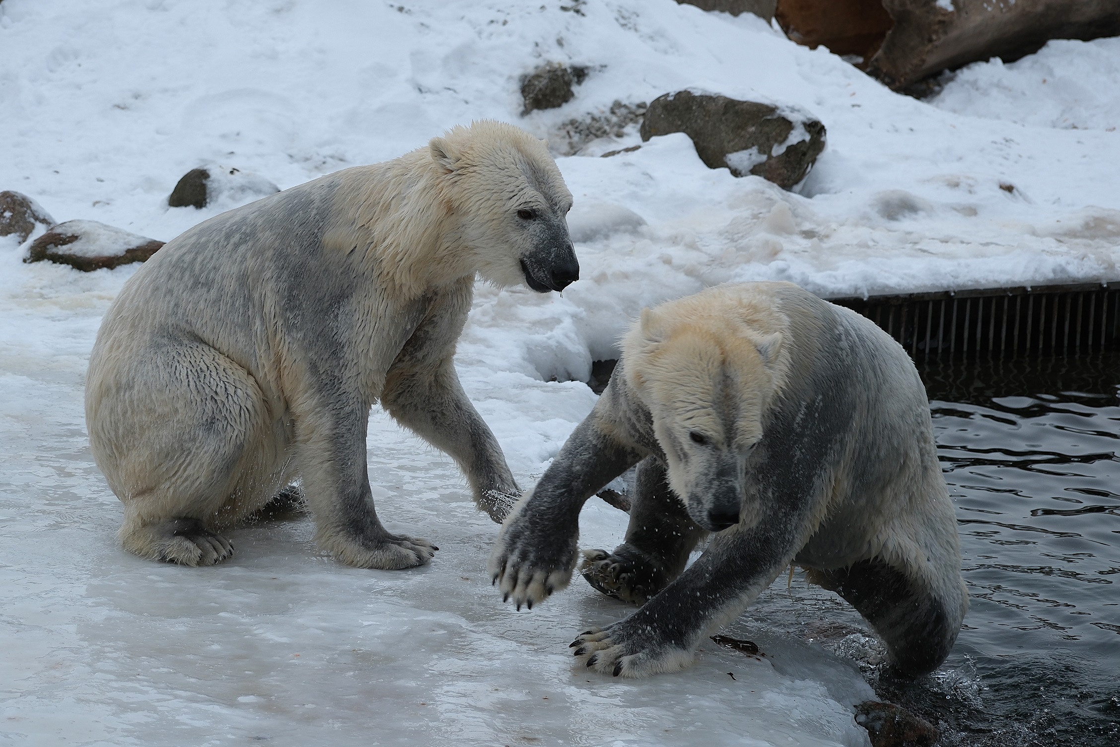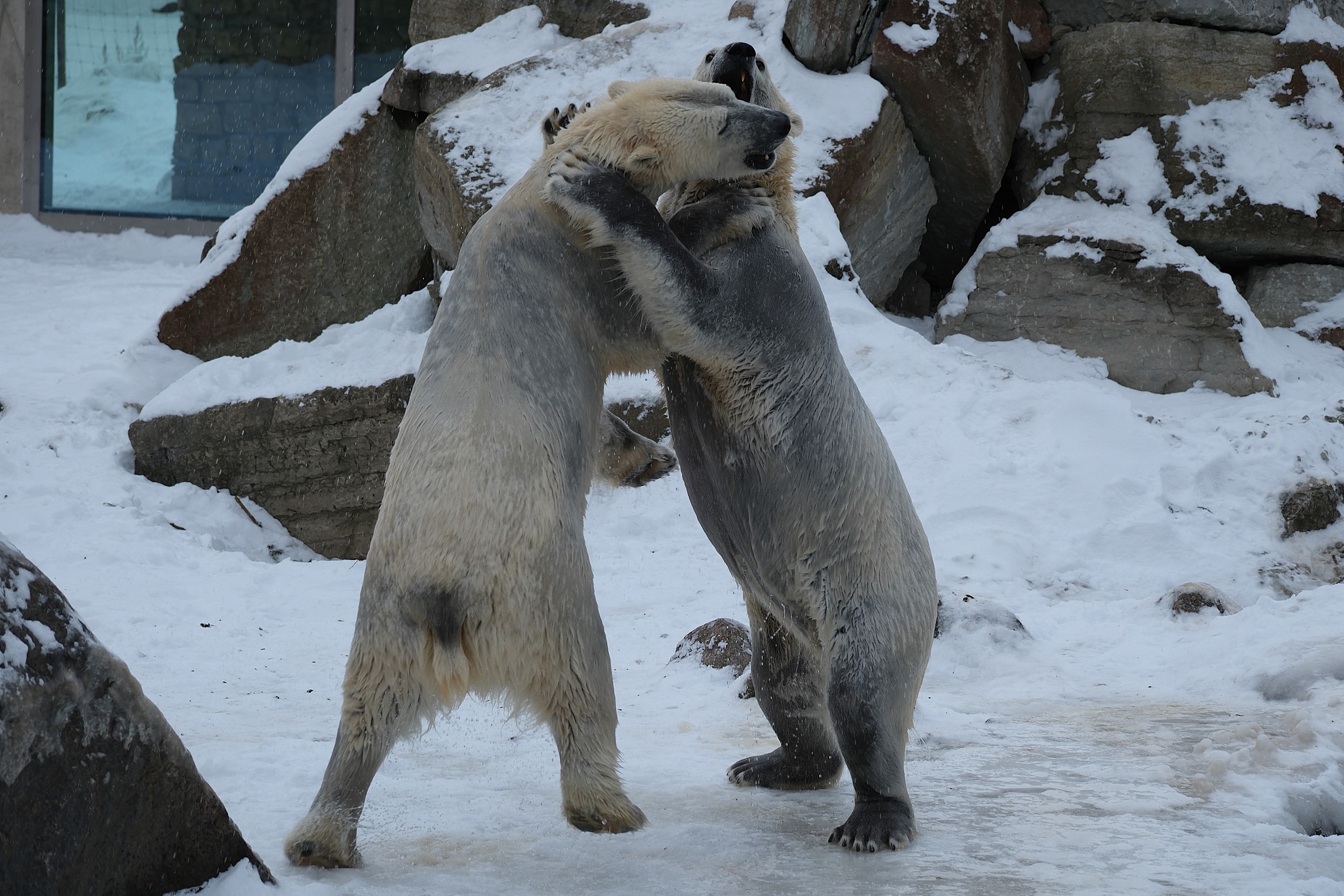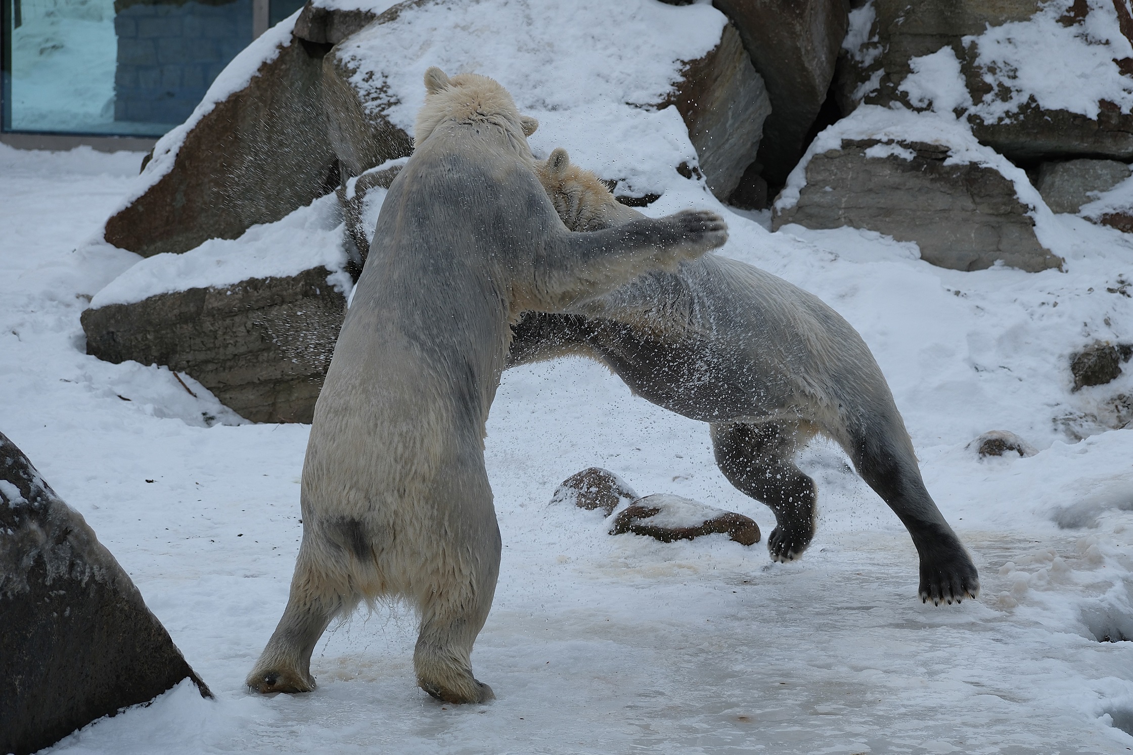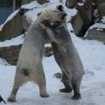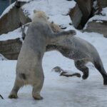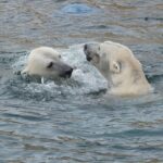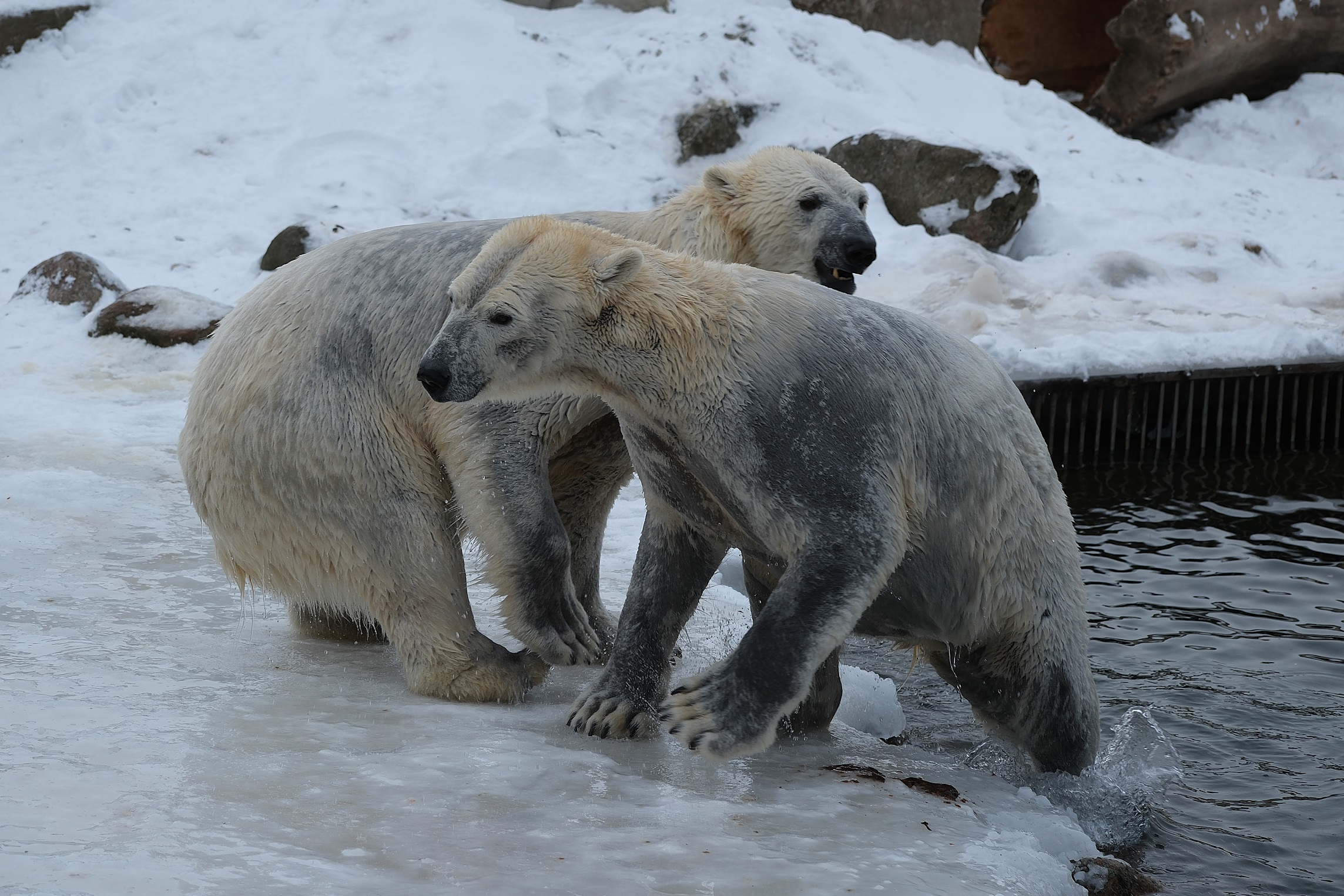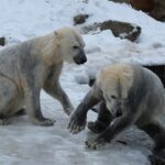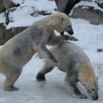 Teisipäeva pärastlõunal, kui luigeparv halli taeva taustal kluugutades üle polaariumi lendas, korraldasid jääkarud Imaq ja Inuk uhke etenduse, möllates nii vees kui ka maismaal.
