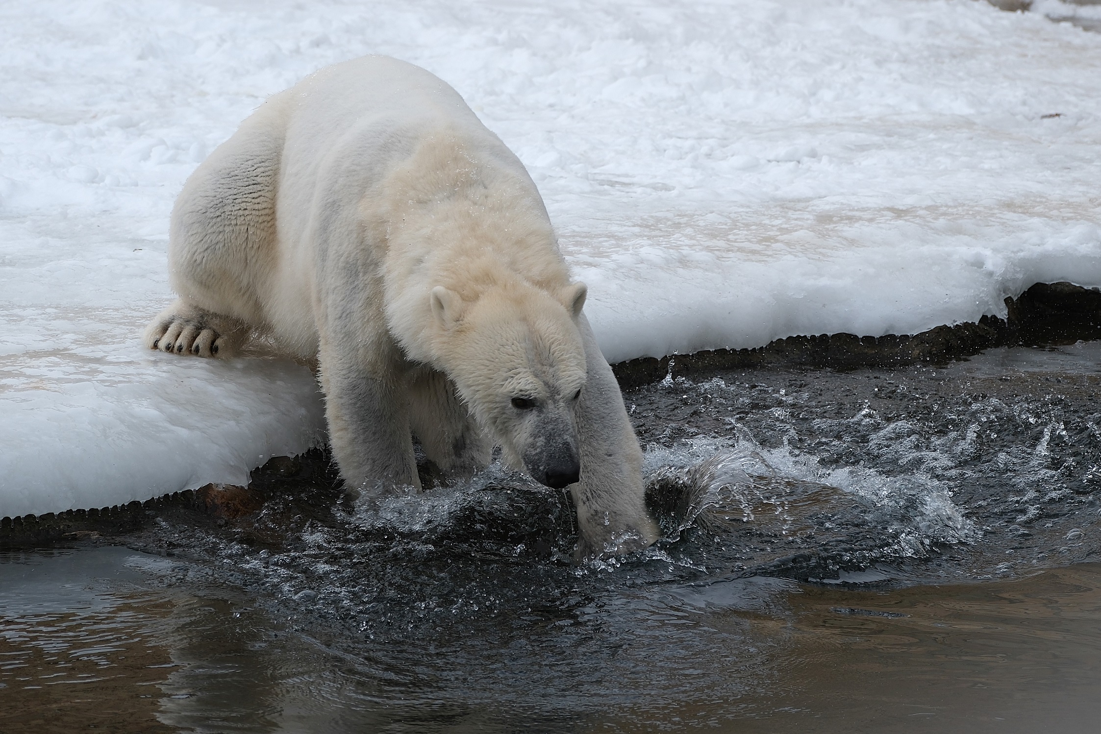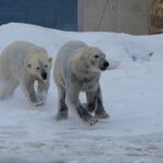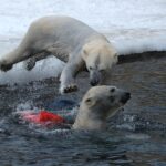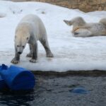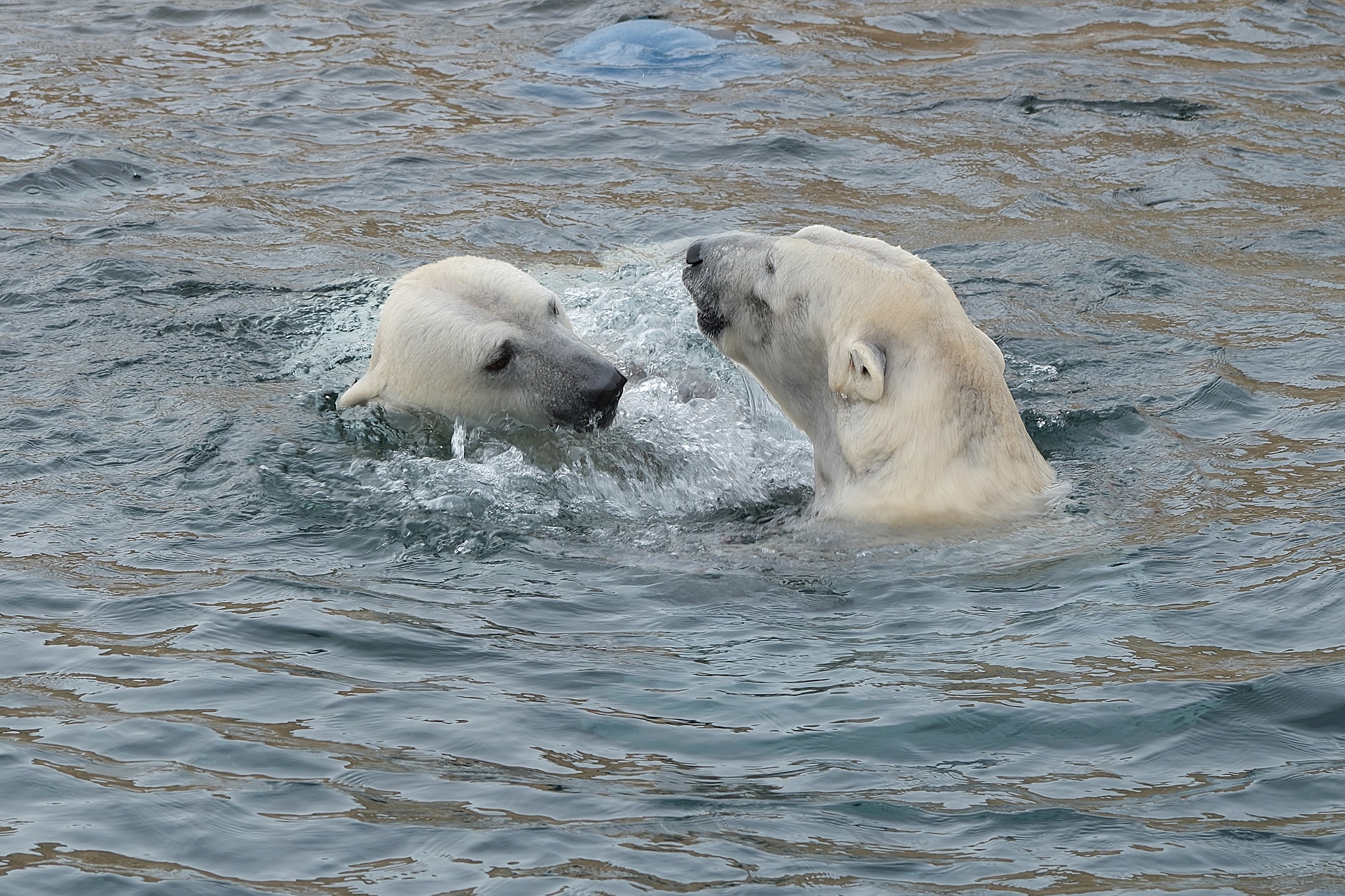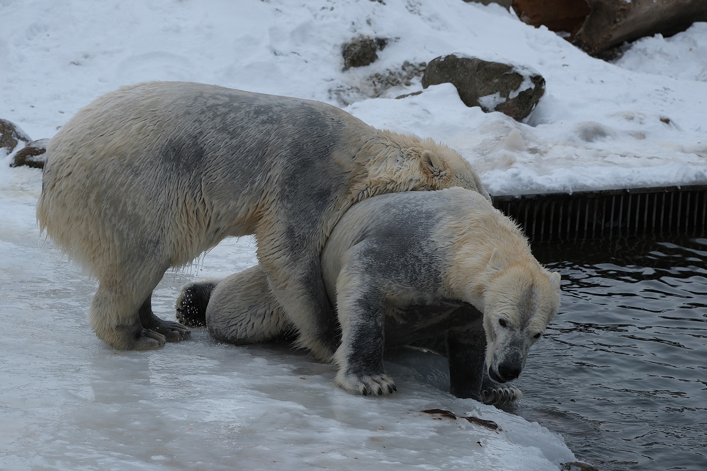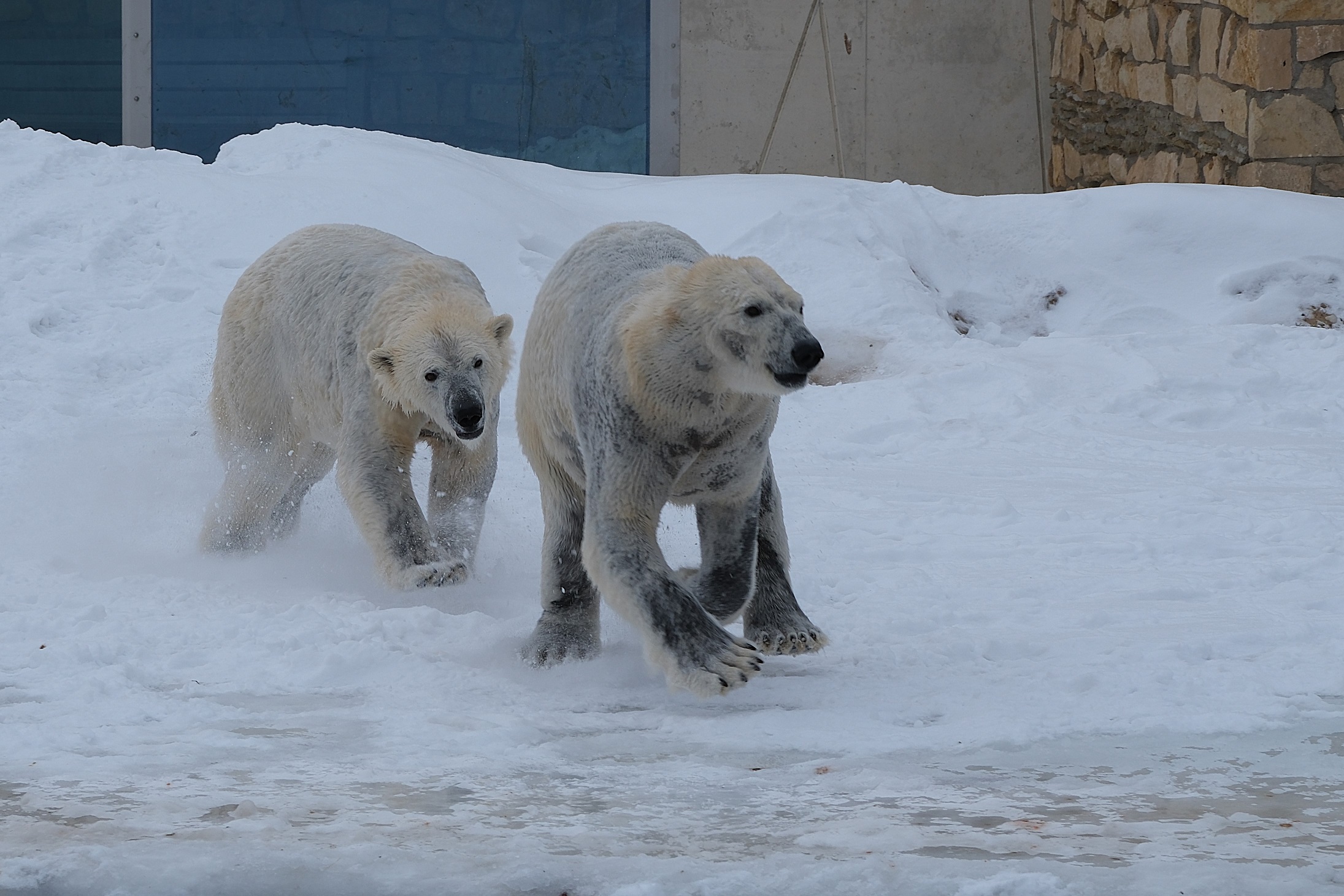 Teisipäeva pärastlõunal, kui luigeparv halli taeva taustal kluugutades üle polaariumi lendas, korraldasid jääkarud Imaq ja Inuk uhke etenduse, möllates nii vees kui ka maismaal.