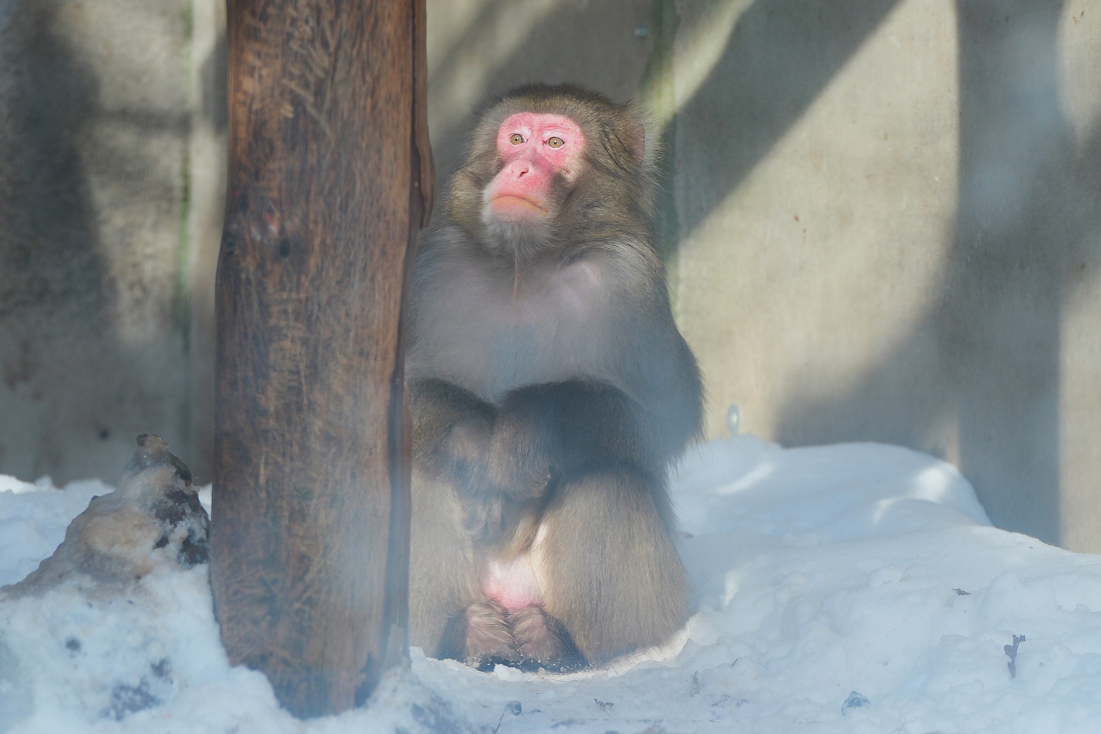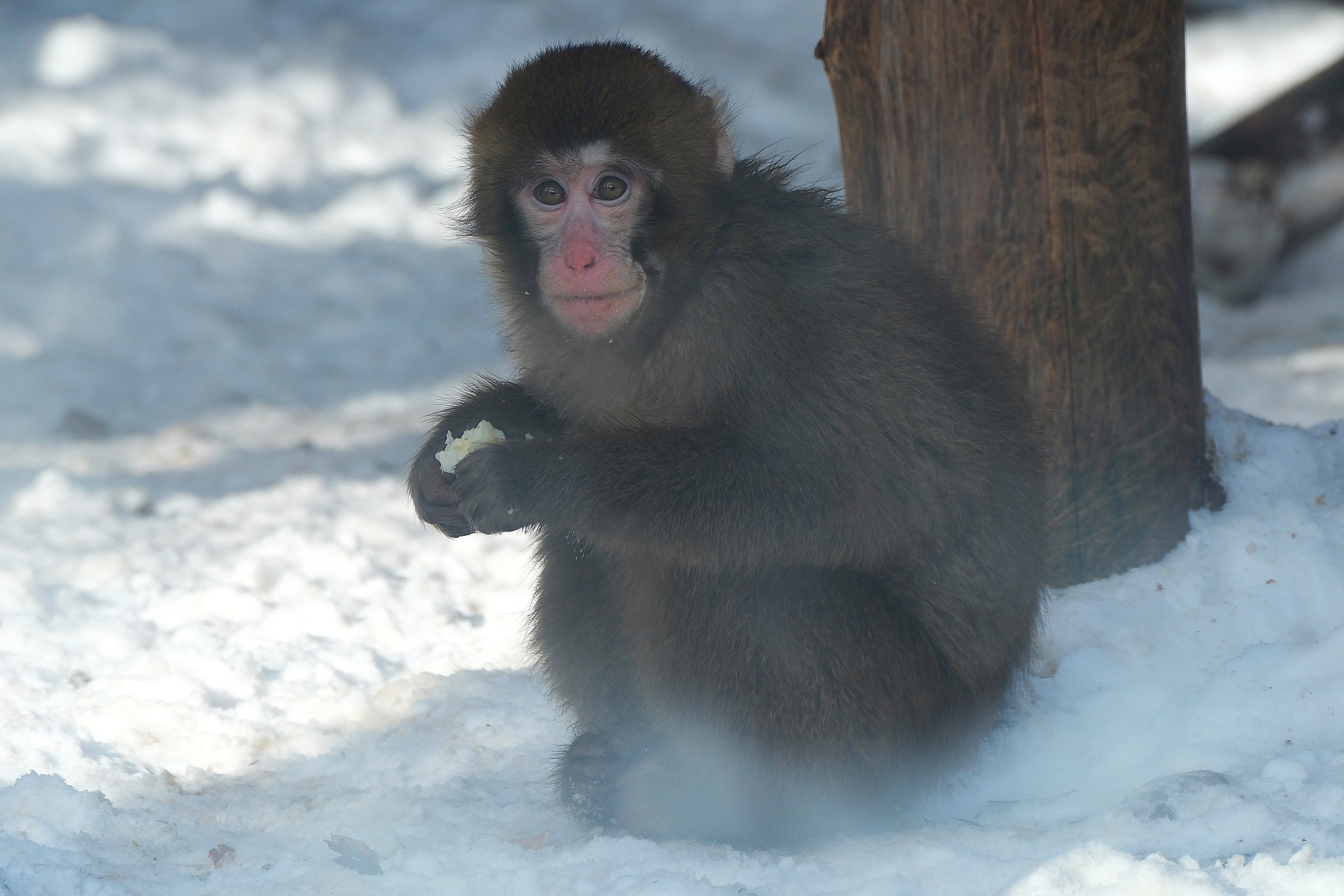 Nina punane, istub jaapani makaagi nooruk lumehanges ja põrnitseb kapsalehte, siis aga paneb selle käest ja läheb tuppa millegi maitsvama järele. Maailma ühed põhjapoolseimad, tiheda karvakasukaga primaadid saavad talvekülmas hästi hakkama, aga päikesest ei ütle nad loomulikult ära.