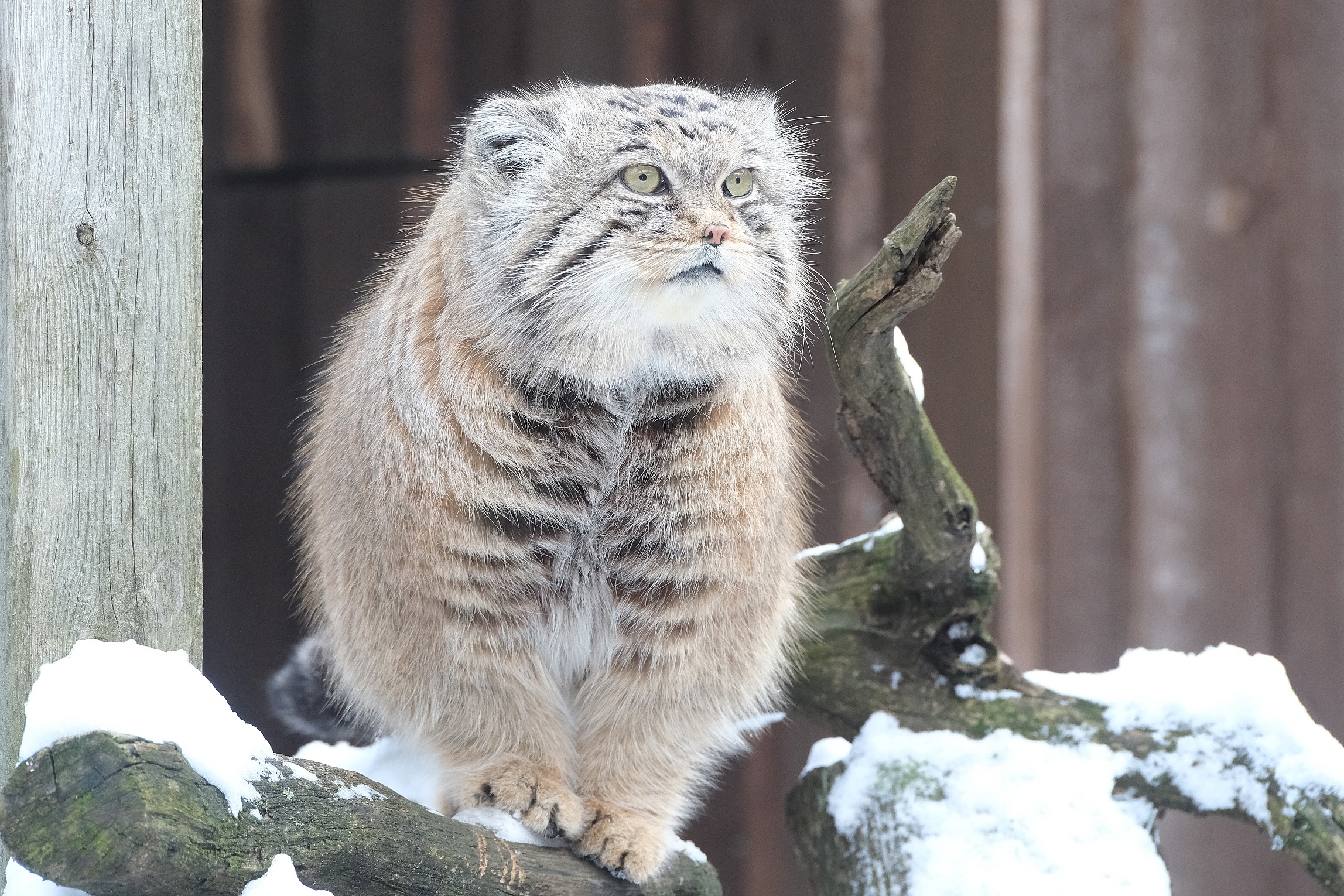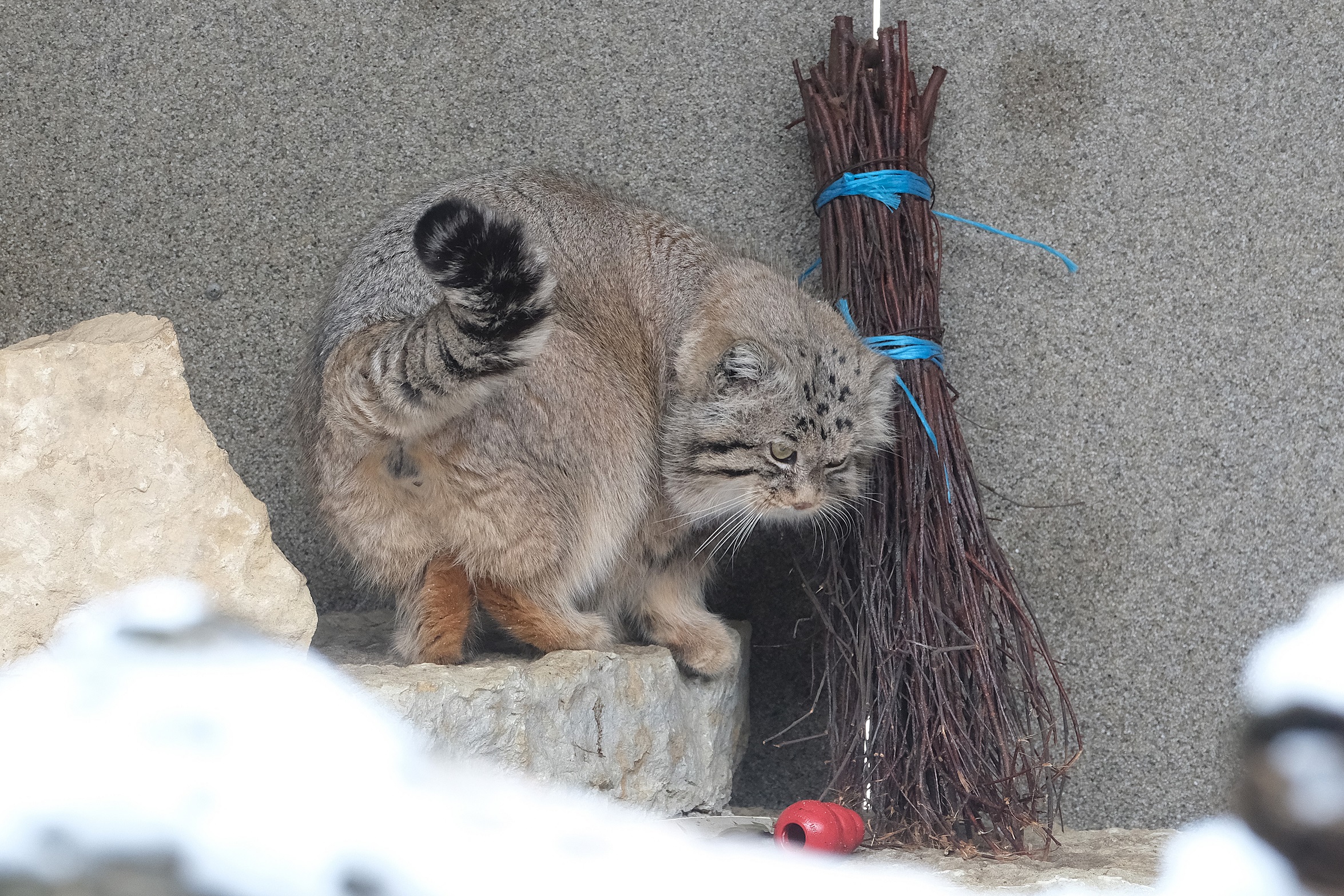 Kaunis kohevas talvekasukas asjalik ja hea isuga manul Mars kondab mööda oma aedikuid – ta otsib kõikvõimalikest kohtadest, ehk on kuskile toidupala poetatud.