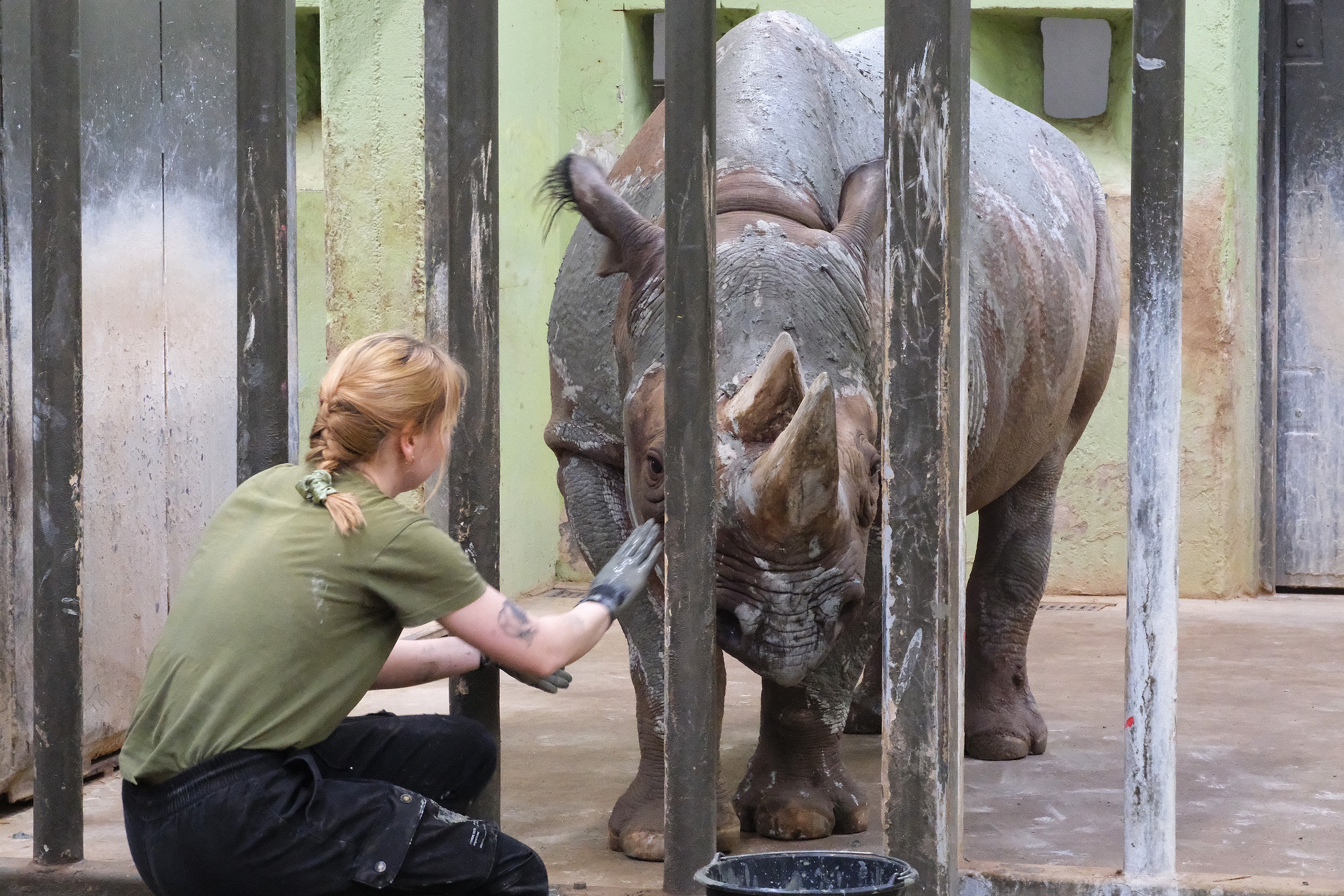 Ninasarvikuaedikus sulas lahti sinisaviauk ning talitajad kasutasid kohe juhust ja tegid meie teravmokk-ninasarvikule Bintile kogukeha savimaski. See on ninasarvikute naha hooldusel väga oluline ja meeldib loomale väga.